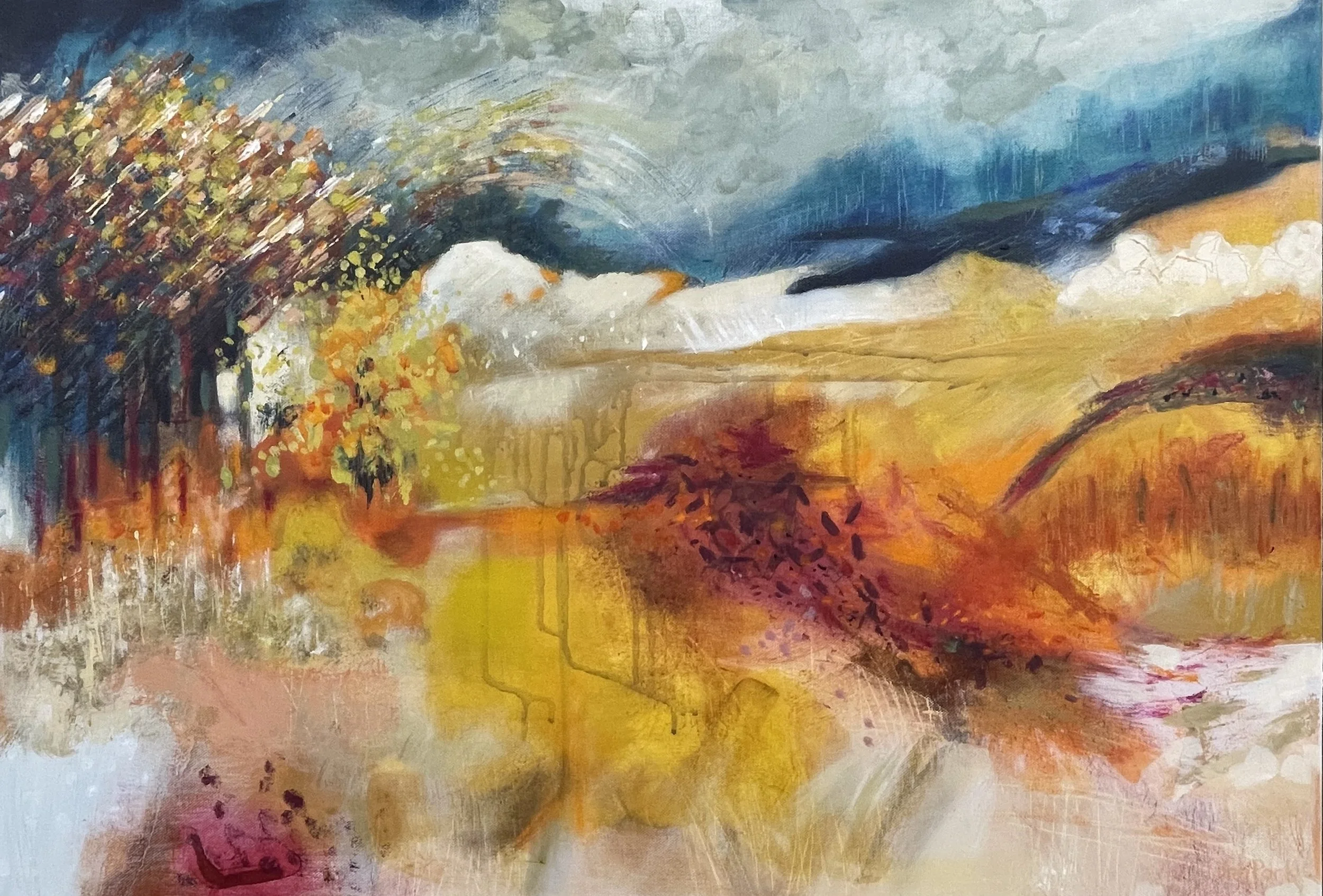 This piece captures the season with atmosphere and the movement of the dried grasses and falling leaves blowing in the swirling autumn winds.
